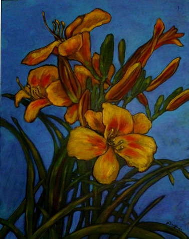 Daylilies, 2014, 16 x 20", acrylic paint on canvas - sold - private collection