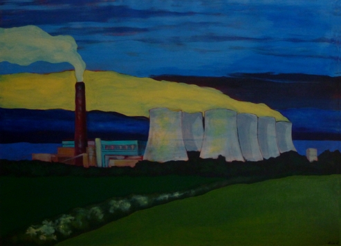 Drax power station 2014, acrylic paint on canvas, 40 x 52"