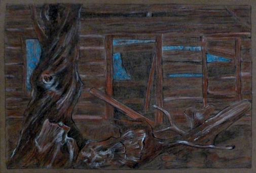Old Homestead near Golden Lake, - study for a painting, 16 x 20", mixed media on brown paper