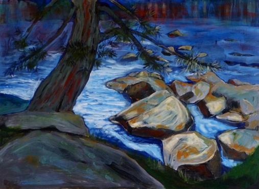 Madawaska River near Whitney, 2017, 12 x 16", acrylic paint on board