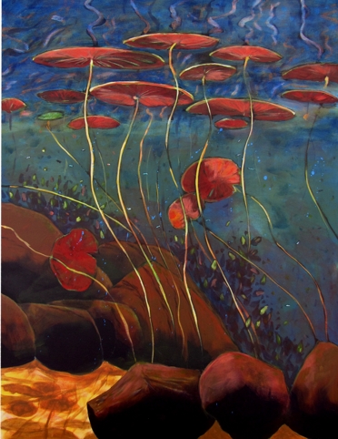At the Drop-off, (Fish Camp Series) 2020, 36 x 48", acrylic paint on canvas, Private Collection This painting is available as a 16" x 20" ready to hang canvas print for $350.00