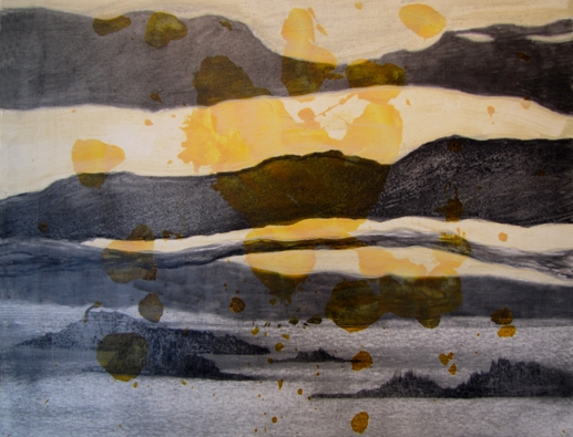 Sunrise on the Ottawa River, 2022, 16 x 20" powdered graphite and gouache on board